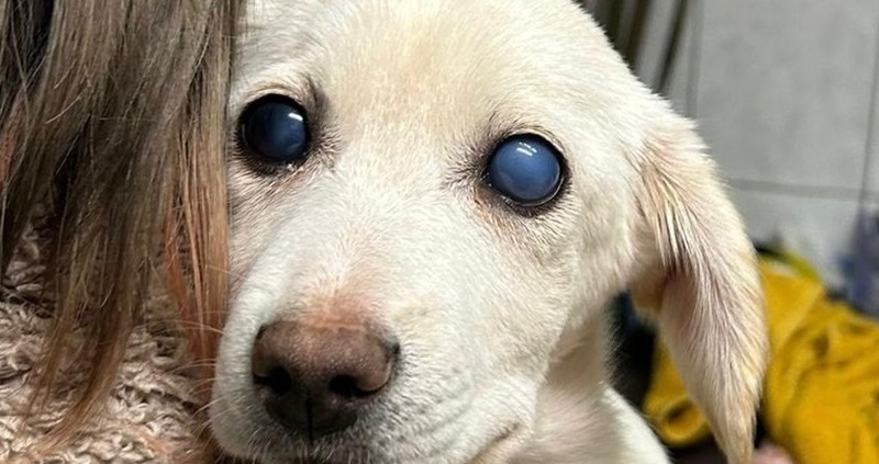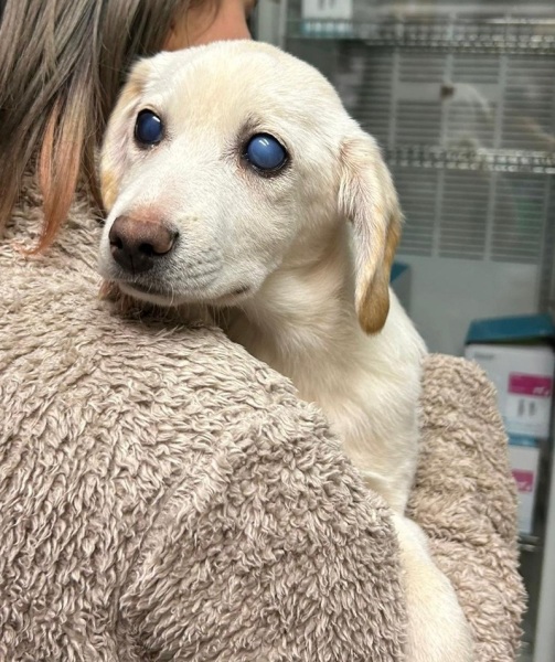 Auf dem ersten Foto aus Rumänien sieht sie noch ganz gesund und normal aus, leider zeigte sich bei der tierärztlichen Untersuchung, dass mit ihren Augen etwas nicht stimmt.