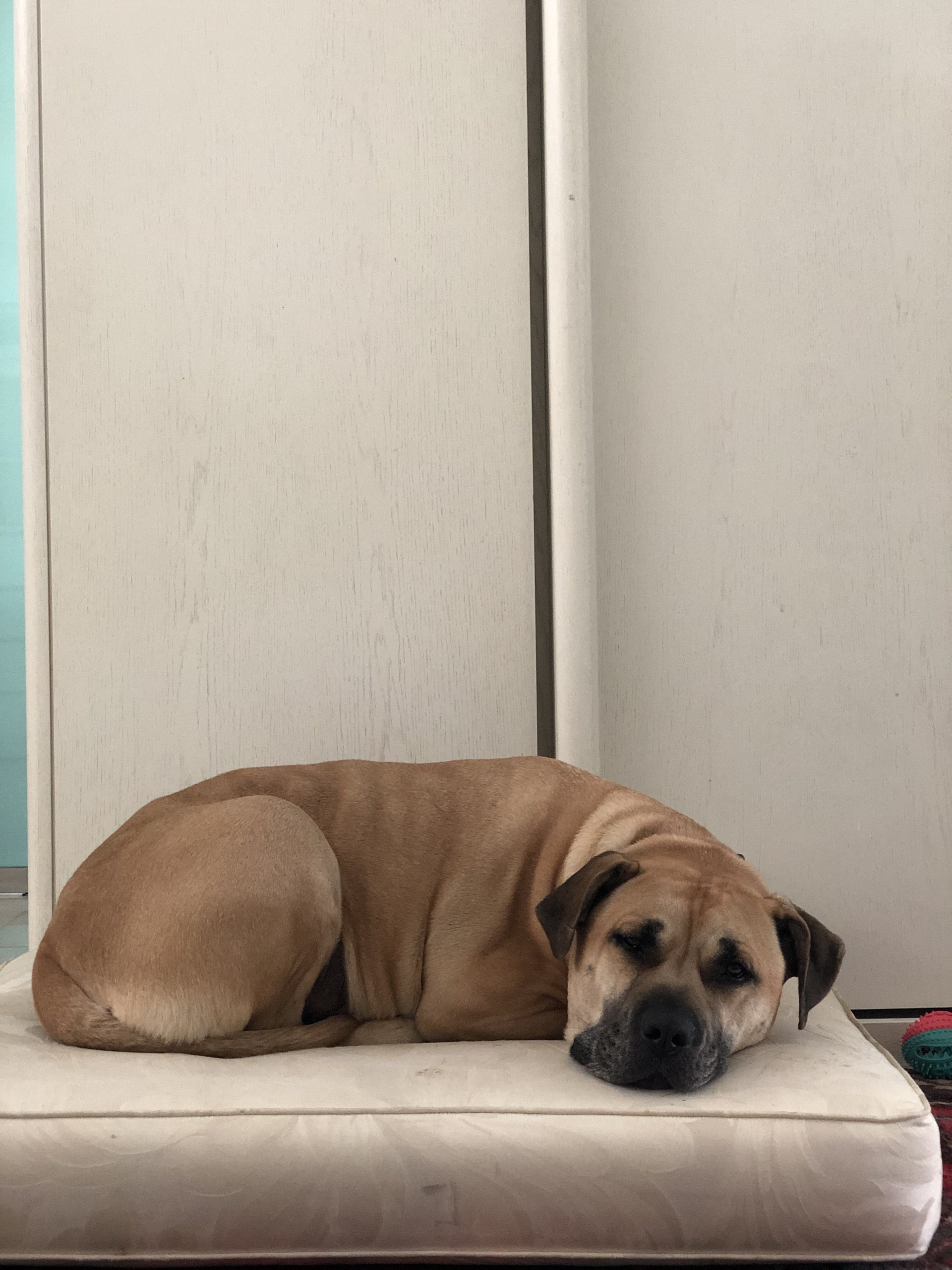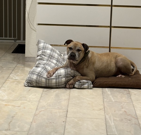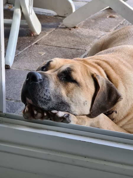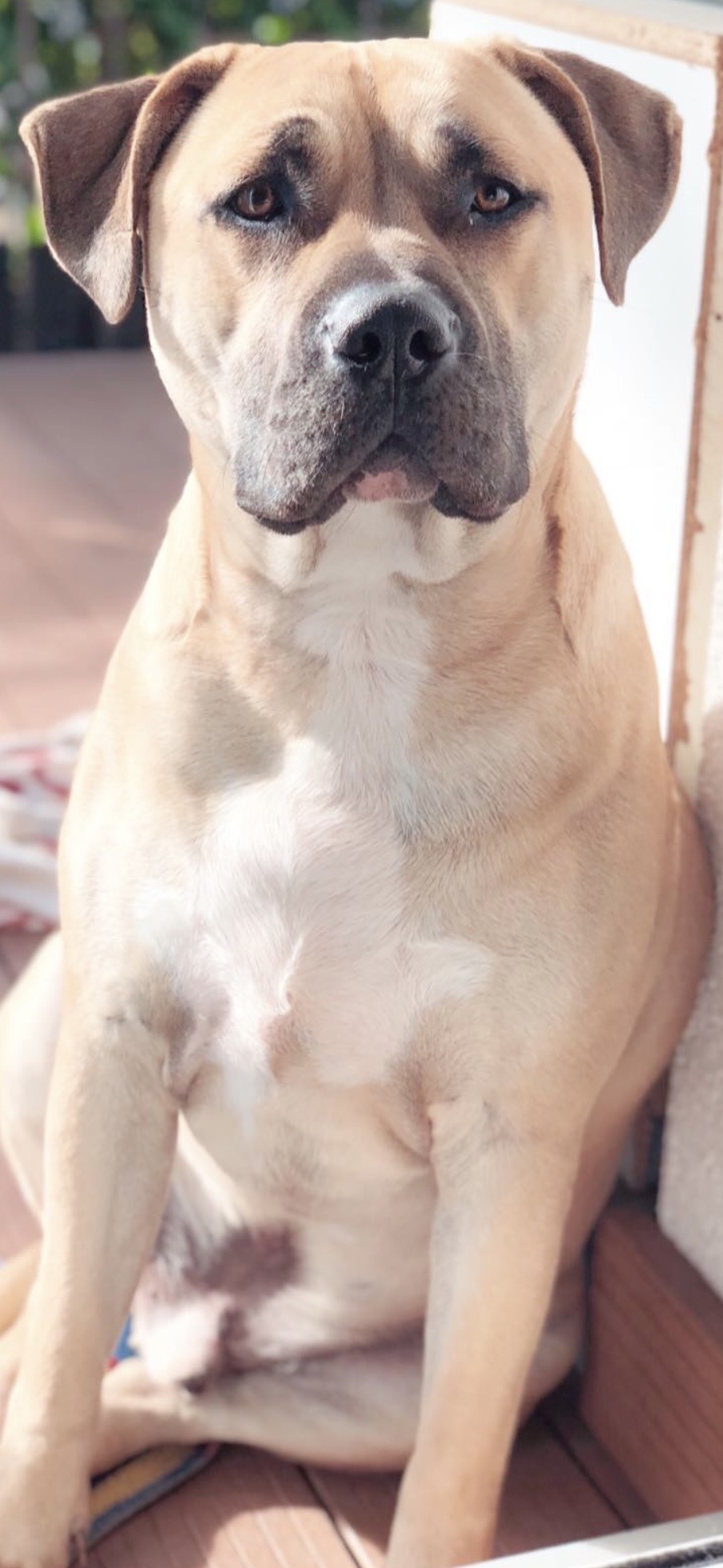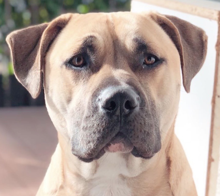 Yaman sucht ein neues, liebevolles Zuhause. Er lebt seit 2016 in seiner Familie, kam im Welpenalter zu ihnen und ist ein kastrierter Mischling aus Dogo Canario und American Staffordshire Terrier.