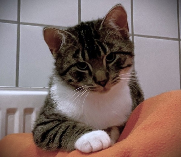 Alex könnte als Zweitkätzchen zu einer anderen jungen oder jung-gebliebenen Katzen/Kater vermittelt werden oder auch sehr gerne Tommy oder Jacky aus ihrem Zimmer mitbringen.