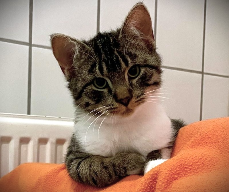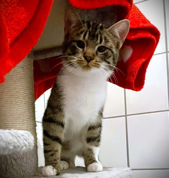 Die anfangs vorsichtige Alex ist ein Fundkätzchen und wohnt mit den ihren Brüdern Tommy und Jacky in einem Zimmer. Sie ist ist noch die Zurückhaltendste von den dreien. Typisch Mädchen schaut sie sich das Spielen erstmal an und kommt dann aber auch dazu. Sie ist aber sehr bestechlich mit gekochtem Hähnchen und wenn sie dabei ist, genießt sie streicheln und schnurrt ordentlich.