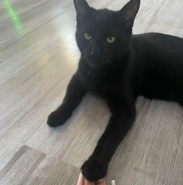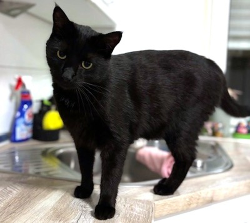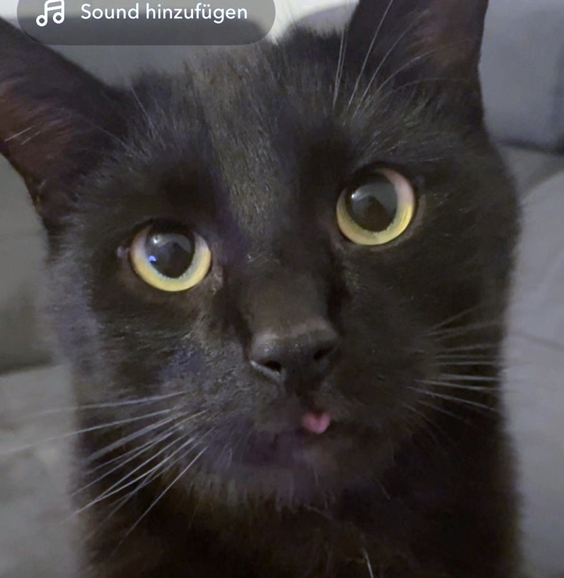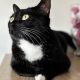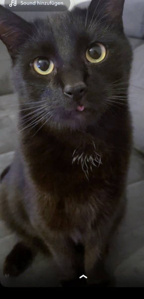 Rasse: EKH-Mix , schwarz mit 10 weißen Haaren auf der Brust