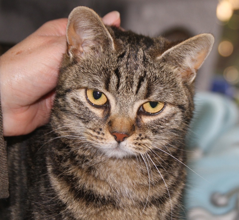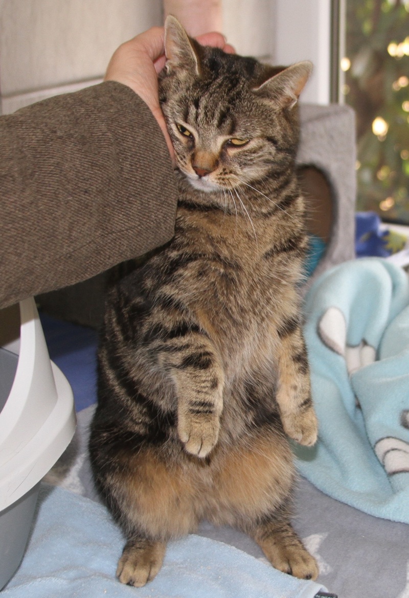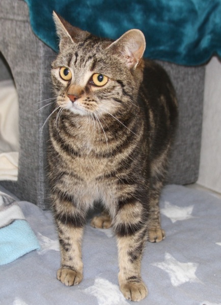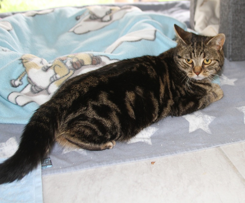 Rasse: American Shorthair, braun-schwarz marmoriert