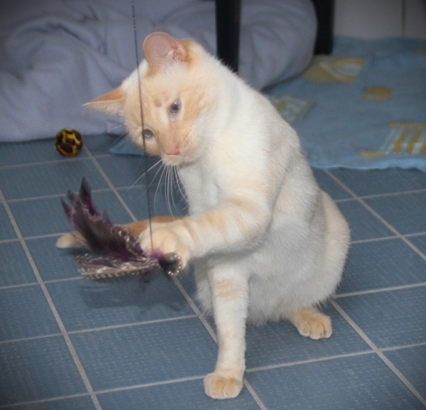 Anfangs ist Felix etwas vorsichtig, taut aber schnell auf, wenn es ums Thema Spielen geht und brauchte nicht lange, um sich mit Begeisterung der Spielangel zu widmen. Von seinem Bruder Rudi haben wir noch kein Foto, werden das aber in den nächsten Tagen machen. Er ist durchaus etwas schüchtern, daher suchen wir für die beiden wunderschönen Kater ein eher ruhiges Zuhause.