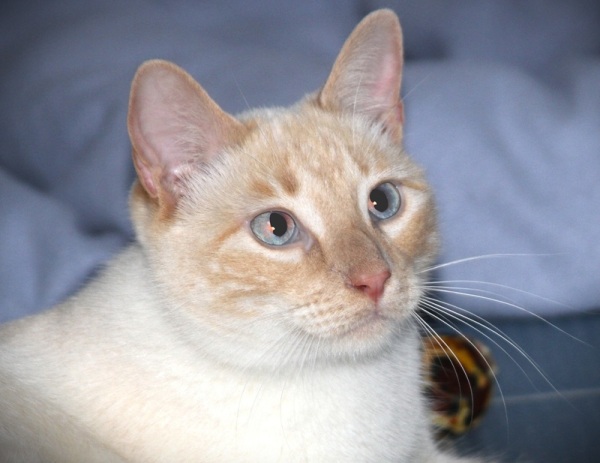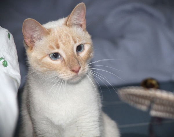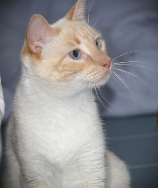 Rasse: Siam-Mix, cremebeige-weiß mit blauen Augen