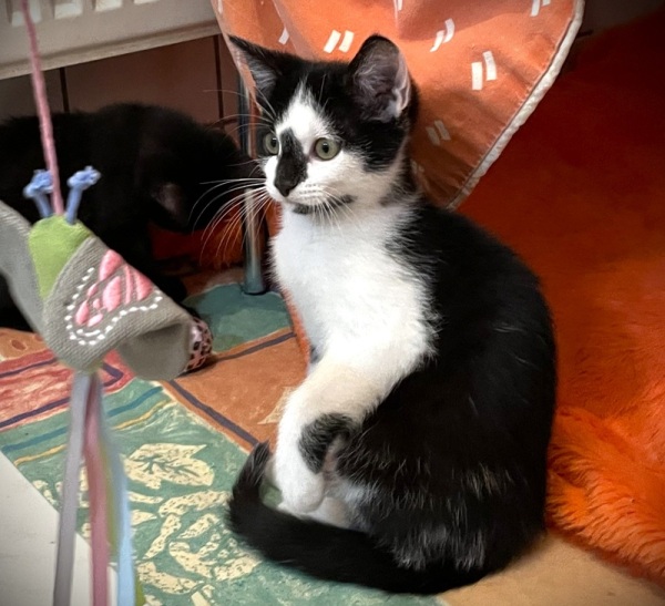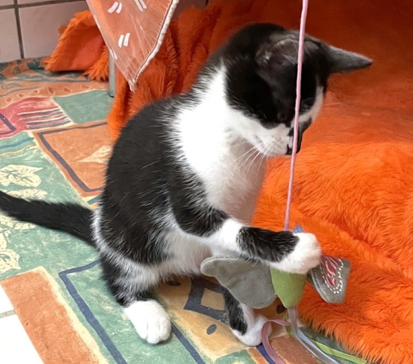 Katerchen Gilbert ist einer von 4 Kitten (die anderen 3 heißen Gordon, Gerrit und Gucci) die Ende Mai im Tierheim geboren wurden. Wenn unsere Katzenflüsterin mit Spielangel und Leckerlis vorbeikommt, lässt der kleine Gilbert sich nicht lange bitten, und kommt zum Spielen gerne raus. Er ist sehr aufgeschlossen und kann mit allen seinen Geschwistern gut. Daher könnte er in jeder Konstellation zu netten Katzenfreunden (gerne auch zu einer Familie mit verständigen Kindern) vermitteln werden, die ihnen nach der Kastration mit ca. 6 Monaten ein artgerechtes Leben mit Freigang schenken können.
