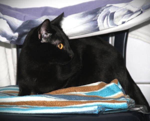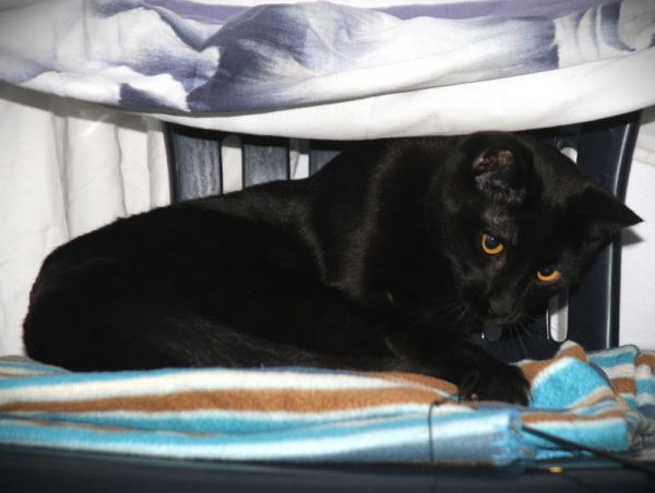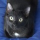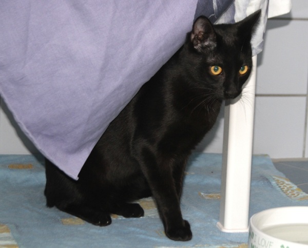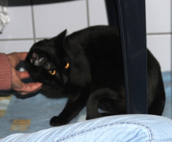 Rasse: EKH, schwarz mit 5 weißen Haaren auf der Brust