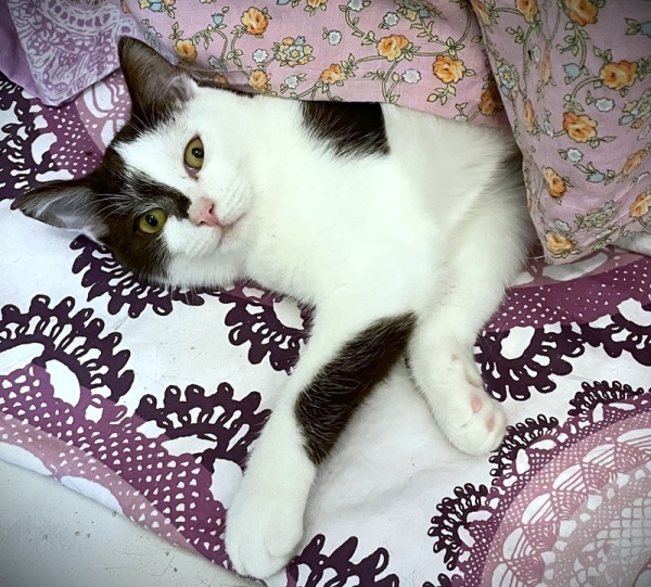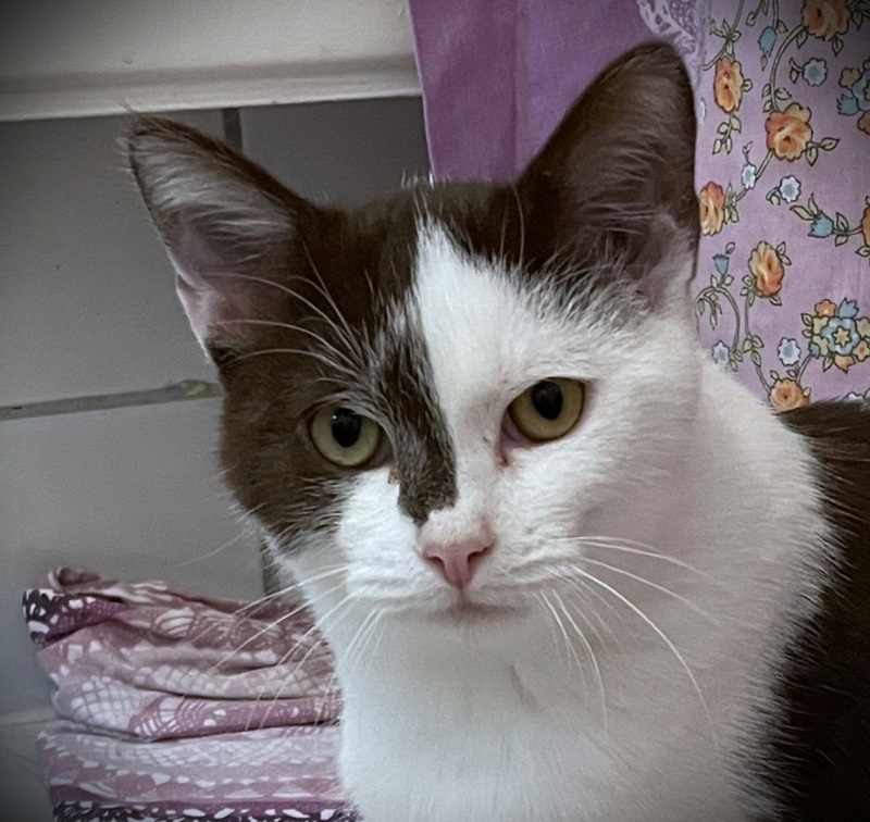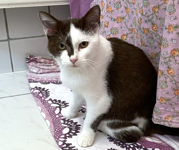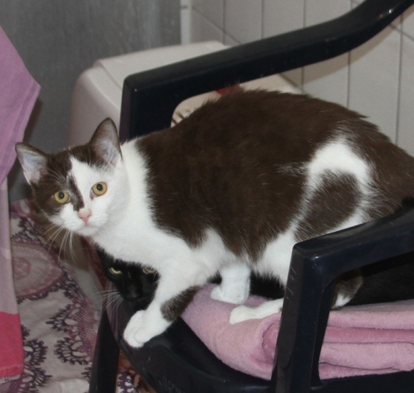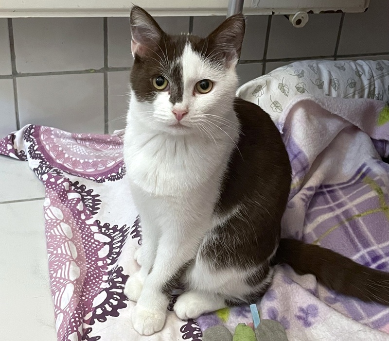 Ivie hat eine äußerst ungewöhnliche Farbe – sie ist braun-weiß. Eine sehr seltene Farbe. Die junge Katze ist noch ein bisschen vorsichtig, aber sie hat sich schon von den mutigeren Katern Marley und Linus aus ihrem Zimmer abgeschaut, dass es Spaß macht mit uns zu spielen und merkt auch schon wie schön es ist, gestreichelt zu werden.