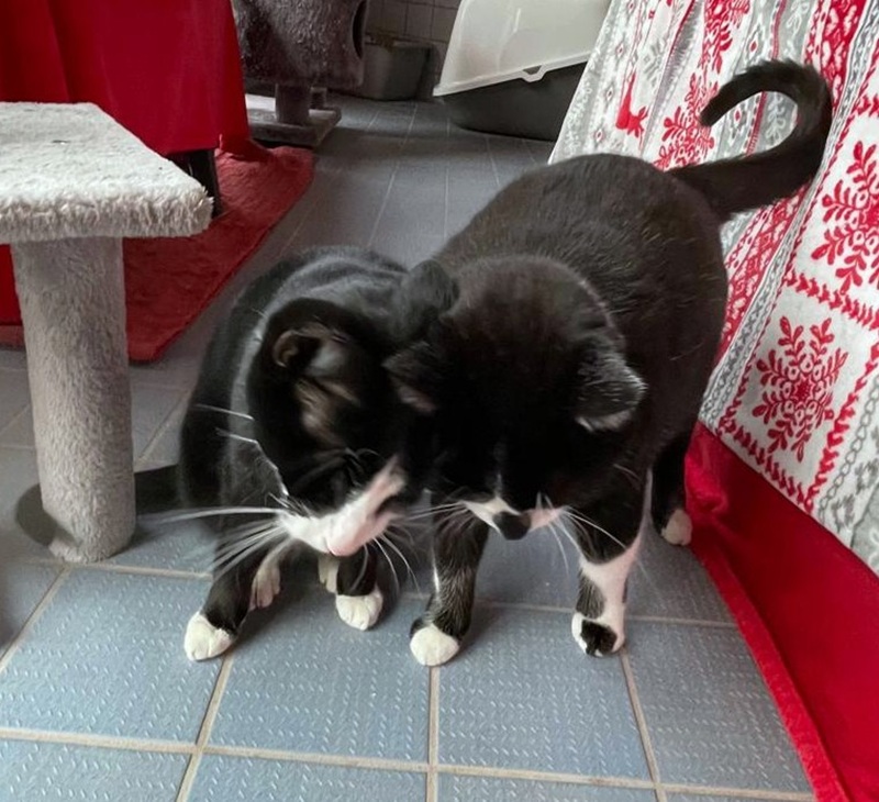 Janes ist einer von 5 Katern, die gemeinsam in einem unserer schönen großen Zimmer, mit der Möglichkeit auf Freigang, leben. Von unserer Katzenflüsterin lässt er sich mittlerweile streicheln und mit ihr spielt er auch. Er versteht sich sehr gut mit Kater Benny und schaut sich auch regelmäßig von ihm ab, wie man mit uns Menschen umgeht, daher möchten wir die beiden gerne zusammen vermitteln. Wir suchen auf jeden Fall eher ruhige Katzenfreunde für Janes und Benny.