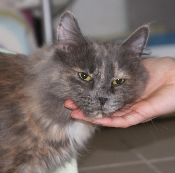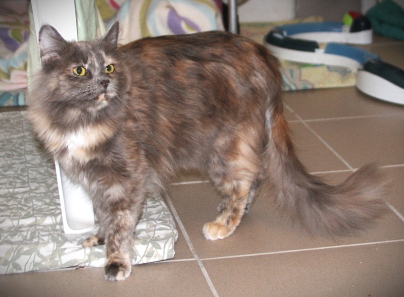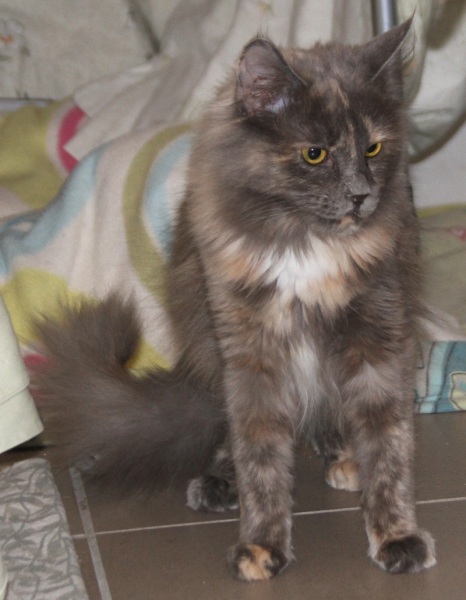Rasse: Maine-Coon- Mix, blau-schildpatt-creme