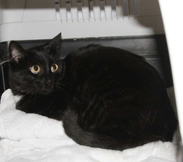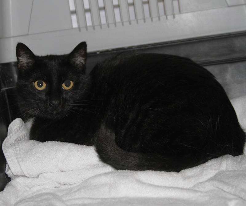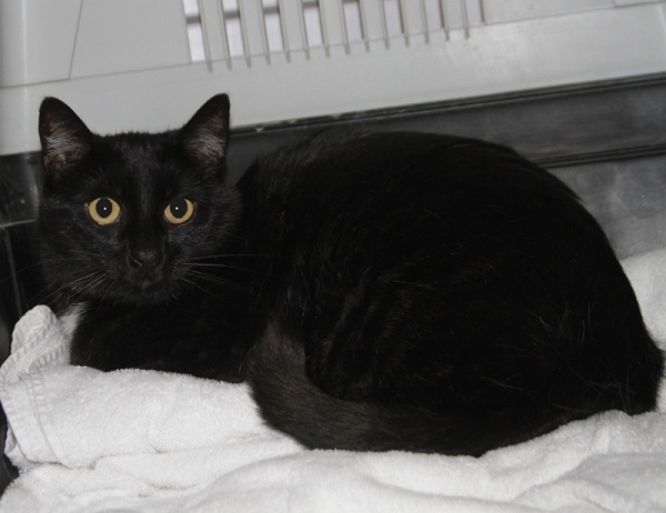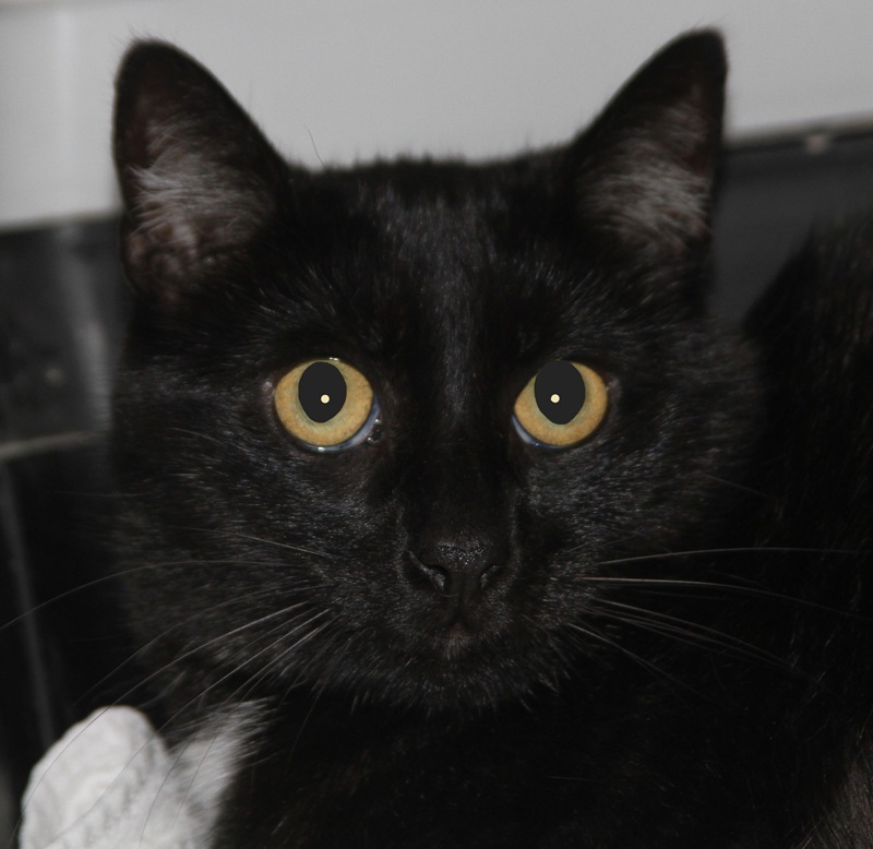 Rasse: BKH-Mix, schwarz mit weißem Fleck auf der Brust