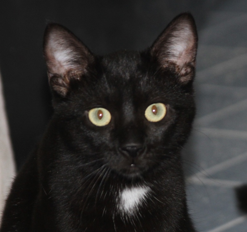 Rasse: EKH, schwarz mit weißem Fleck auf der Brust