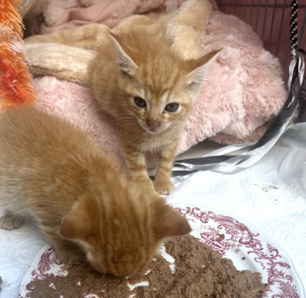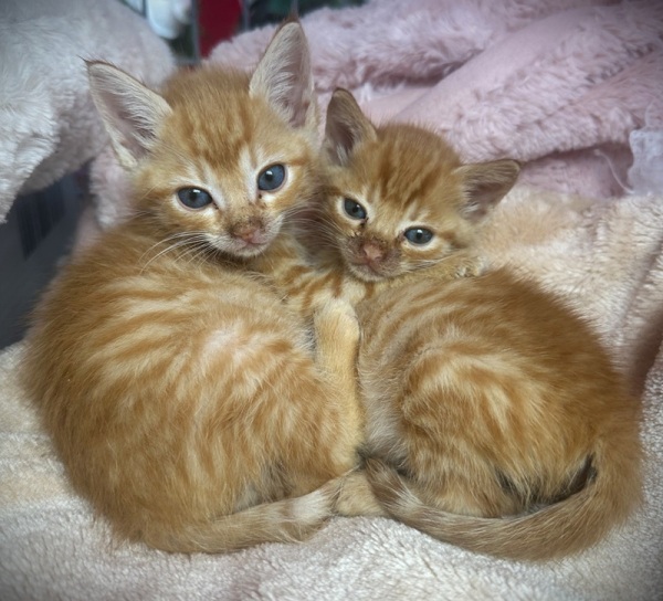 In einer liebevollen Pflegestelle werden die zwei gepäppelt und könnten nun auch schon (da sie keine Katzenmutter) haben, zu Menschen mit Zeit und Freude daran, so jungen Katzen (ca 5 Wochen) aufzuziehen und den Weg in ein glückliches Katzenleben zu ebnen. Die zwei Racker sind den ganzen Tag mit Essen, Schlafen und Toben beschäftigt.