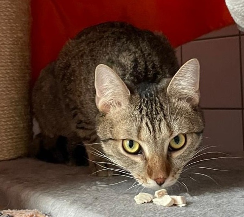 Der noch etwas schüchterne Kater Nilo wurde taut langsam im Tierheim auf. Durch unsere Katzenflüsterin hat er gelernt, dass man mit Menschen spielen kann und die auch oft das ein oder andere Leckerli dabei haben. Das findet er toll. Da Nilo sehr verträglich ist, wäre er der ideale Zweitkater, der zu einem anderen Kater ziehen könnte, um ihm Gesellschaft zu leisten.