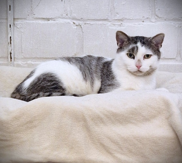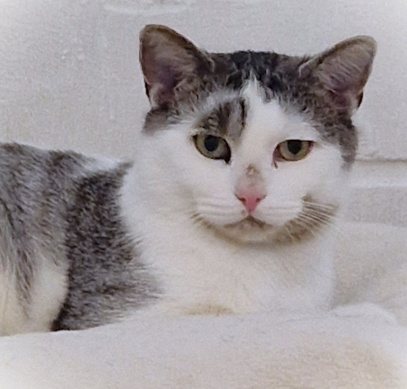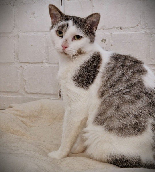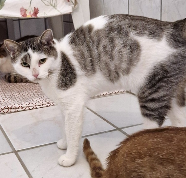 Kater Oskar hat eine unverwechselbare Fellzeichnung. Er kam mit seiner Schwester Lucy aus den Schrebergärten in Königstädten zu uns. Die beiden verstehen sich so gut, dass wir sie nicht trennen möchten.