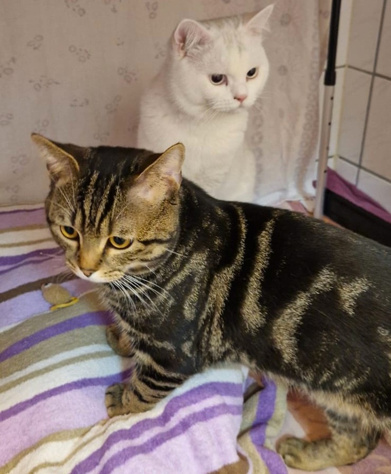 Die beiden sind liebe und ruhige Kater, wobei Snowy mit dem Tierheimalltag nicht so gut zurechtkommt wie sein Bruder, und noch sehr eingeschüchtert ist von den vielen neuen Eindrücken, dem Hundegebell etc.. Wir suchen für die beiden zusammen ein eher ruhiges Zuhause ohne Kinder.
