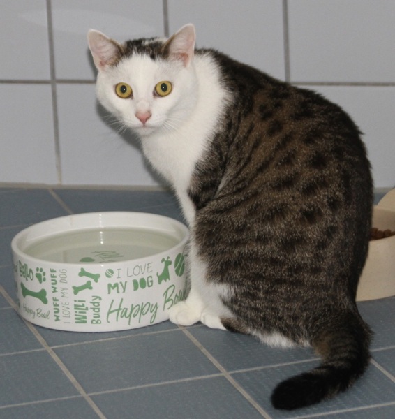 Der sehr menschbezogene und aufgeschlossene Kater Tommy wurde zusammen mit 6 weiteren Katzen wegen Überforderung abgegeben. Er steht im Tierheim an der Tür und begrüßt jeden mit Maunzen und einem Blick direkt in die Augen, als wolle er sagen: Nimm mich, ich will sofort in ein schönes Zuhause ziehen.
