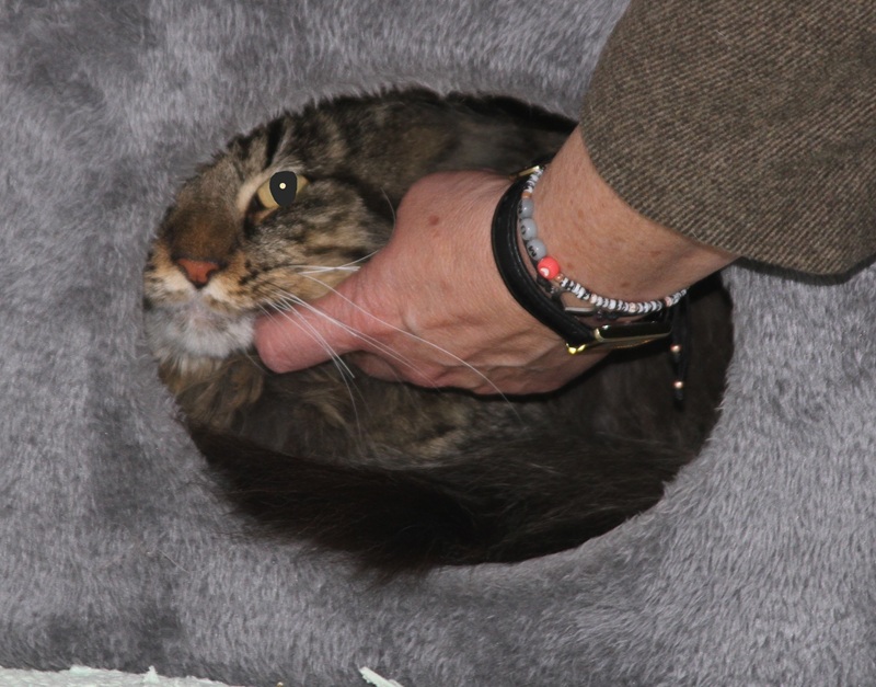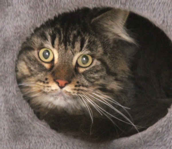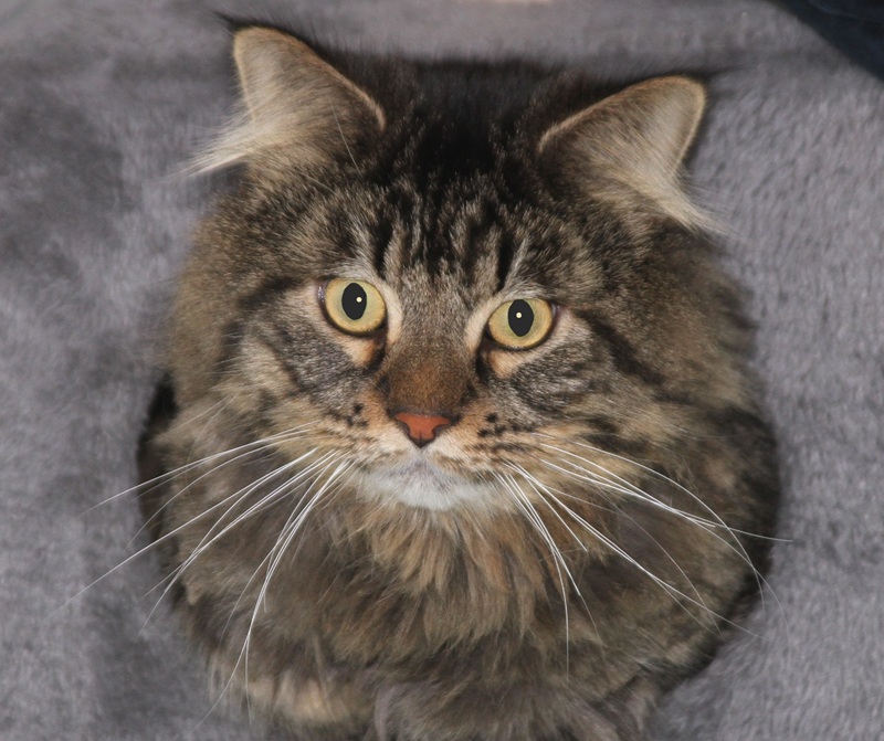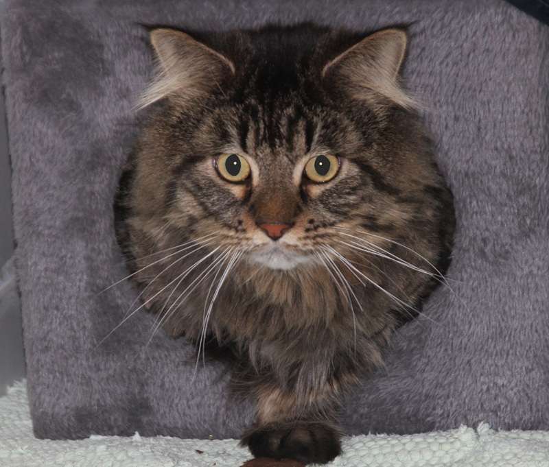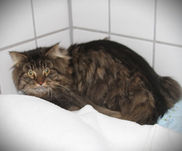 Rasse: Maine-Coon- Mix, braun-schwarz getigert